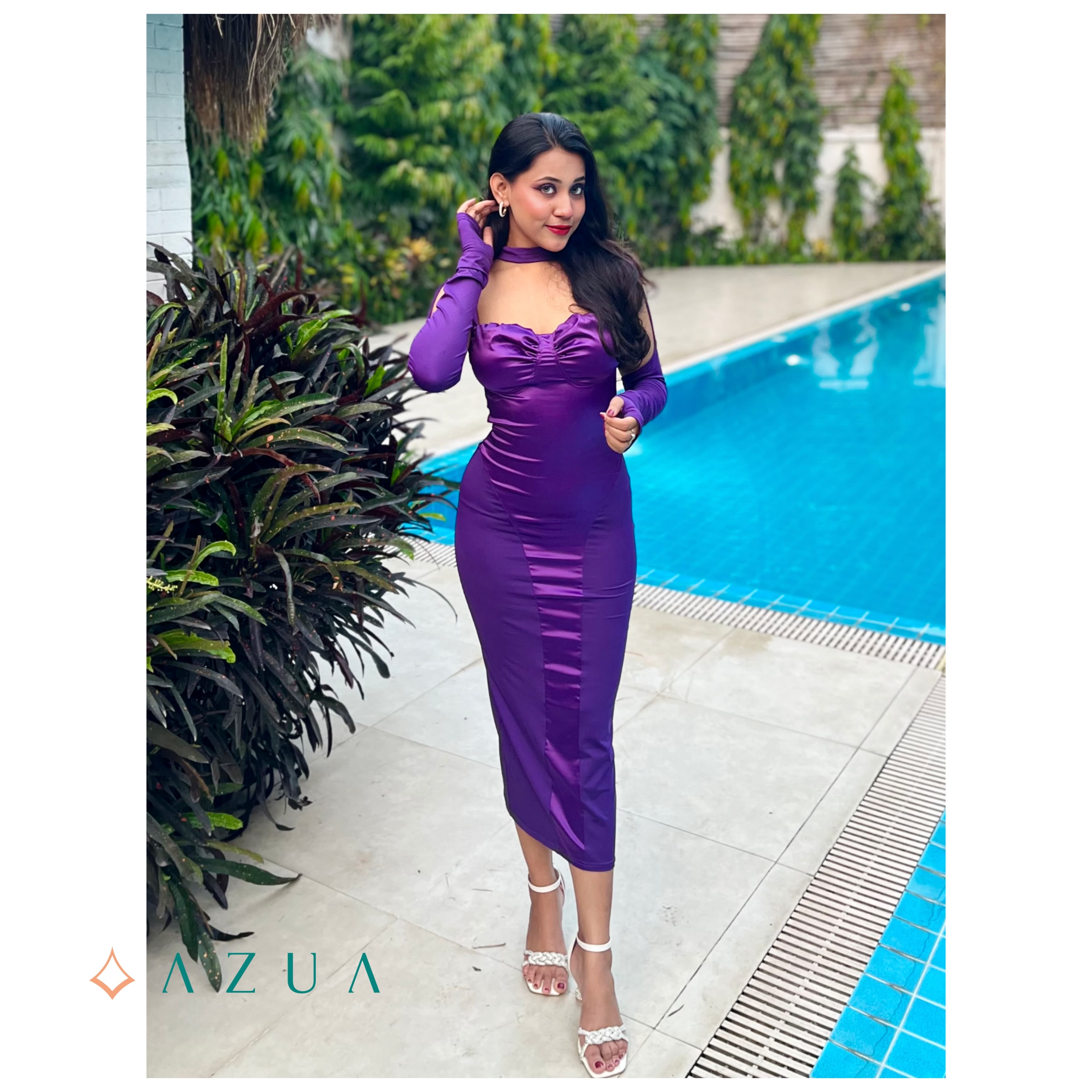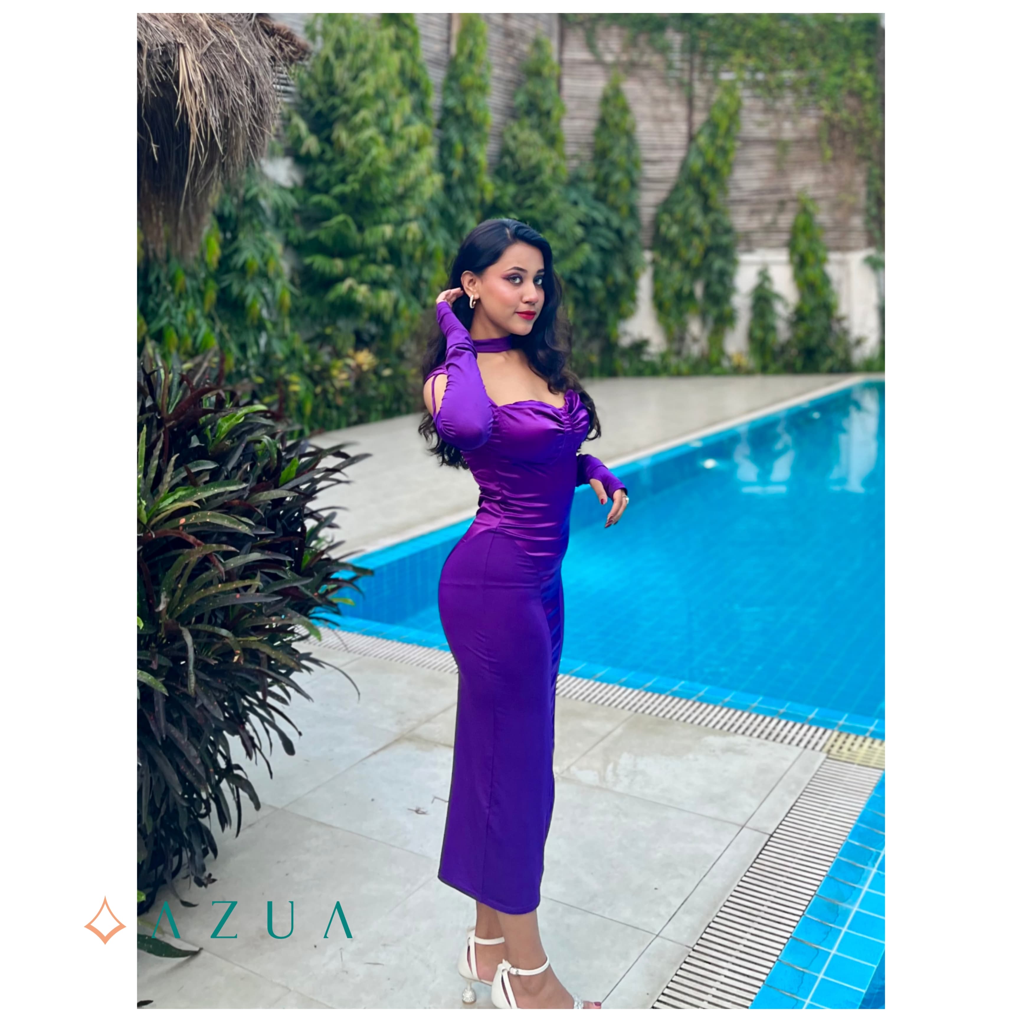One of the starts of our Black Orchid collection and in this season's favourite grape hue, our Grape Corset Midi Dress is brimming chic sexiness. The bodice features our infamous corsetry boning to cinch your waist and is cut for a close fit from our sculpting power mesh to enhance your figure. The lustrous silk satin panel adds to the contouring of your curves. Grape Corset Midi Dress has gently gathered underwired cups for a bust flattering fit in a pretty sweetheart neckline and turns to reveal a keyhole opening to the back.
